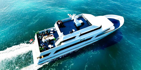 This 113-foot mega-yacht is the perfect venue for corporate events, featuring three elegant decks, brass ceilings, leather seating, and stunning panoramic views. Elevate your next business gathering with a one-of-a-kind experience on the water.